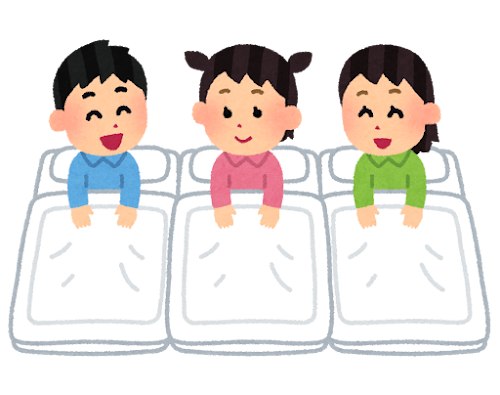 今も変わらず、家族5人揃って21時半に川の字で布団に入ります。